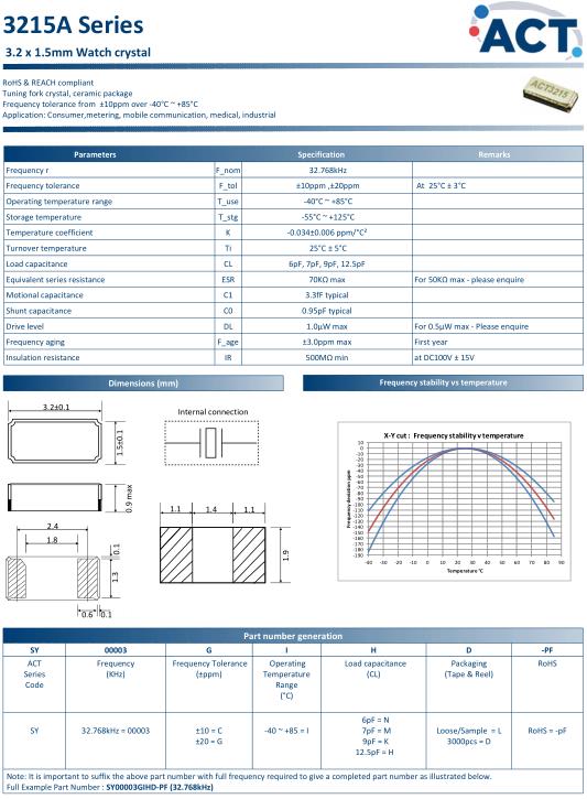 ACT晶振,3215A晶振,SY00003GIHD-PF(32.768kHz)晶振