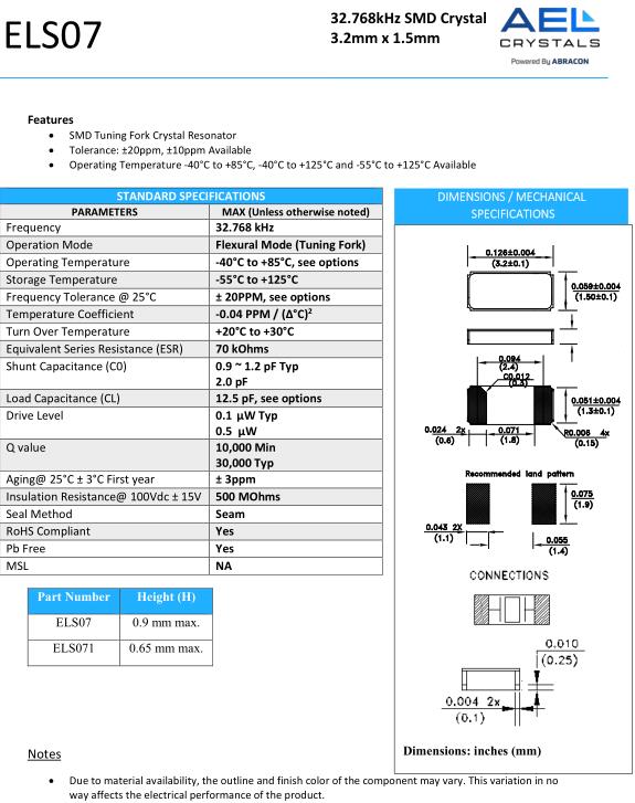 AEL晶振,ELS07晶振,ELS07-32.768kHz-9-H-T晶振