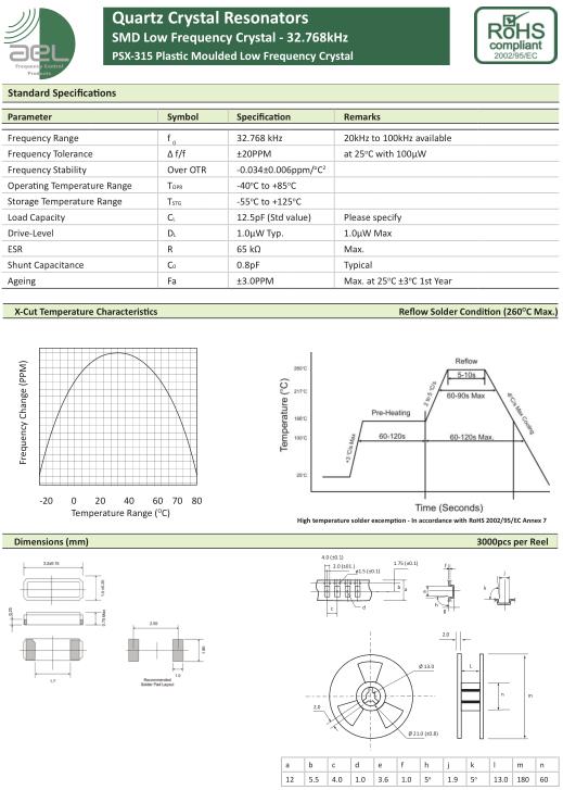 | AEL晶振規格 | 單位 | PSX-315晶振頻率范圍 | 石英晶振基本條件 | |