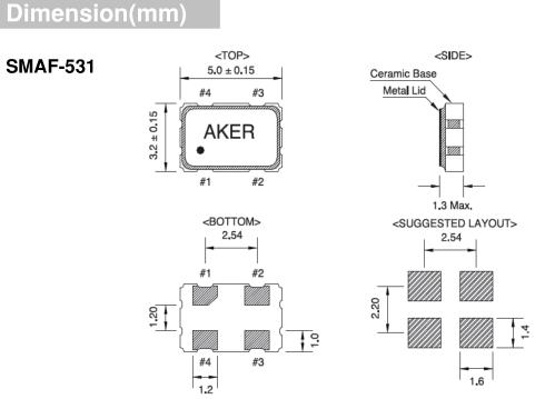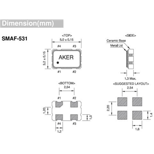 AKER晶振,SMAF-531晶振,5032mm有源晶振,5032mm體積的石英晶體振蕩器,有源晶振,該產品可驅動2.5V的溫補晶振,壓控晶振,VC-TCXO晶體振蕩器產品,電源電壓的低電耗型,編帶包裝方式,可對應自動高速貼片機自動焊接,及IR回流焊接(無鉛對應),為無鉛產品,超小型,質地輕.產品被廣泛應用到集成電路,程控交換系統,無線發射基站.