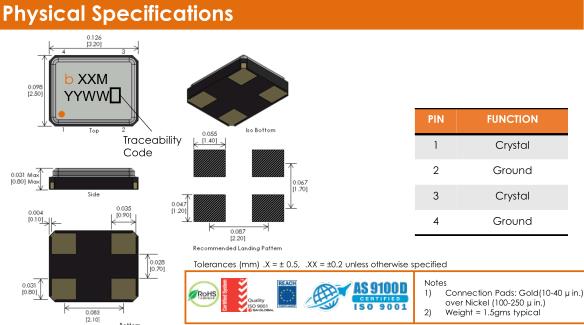 | Equivalent Series Resistance (max) | 10.0 – 16.0 MHz | 100 | Ω | |
