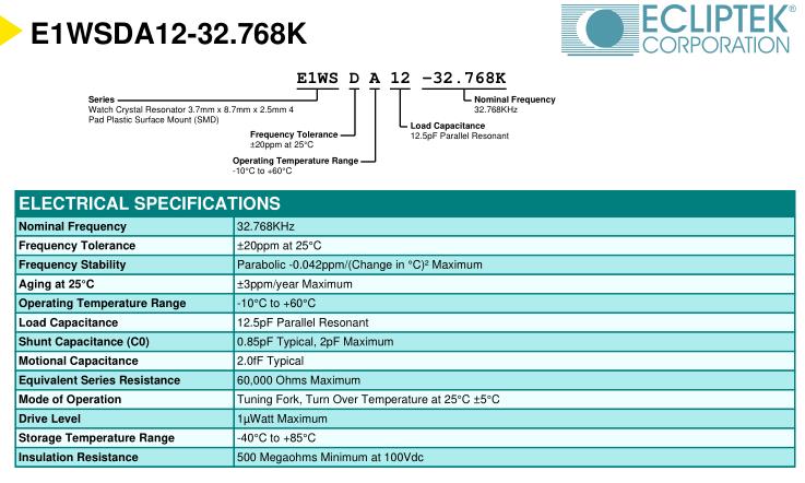 Ecliptek晶振,E1WSDA12-32.768K晶振,貼片晶振