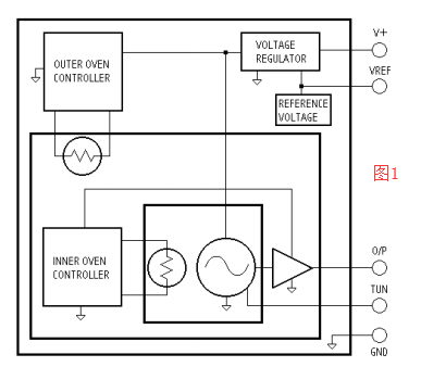 結構框圖達到必要的熱穩定性<2e-10/100°C和低相位噪聲設計采用SC切割的石英晶體封裝在一個雙爐,圖1顯示了該框圖振蕩器的構造,石英晶體和維持電路位于內部烤箱內,然后將內部烤箱組件封閉一秒,外爐組件,這提供了高度穩定性溫度控制的石英外殼晶體和振蕩器元件導致出色的熱穩定性能以及低相位噪聲,特別是在低于1Hz的頻率來自承運人. 內部烤箱控制和輸出放大器電路也由外部烤箱組件封閉如圖1中的框圖所示通過減少熱量來提供更好的熱穩定性溫度變化對內爐的影響控制和放大器電路,從圖1中的數據可以看出振蕩器的性能可與之相媲美在某些情況下,超過了a的表現銣振蕩器,尤其是在改進的領域熱穩定性和低成本,適用于應用振蕩器老化率不能平衡的地方制造,該總體結果可以是頻率參考壓電石英晶體結合的優異的短期穩定性主要銫標準的長期穩定性.