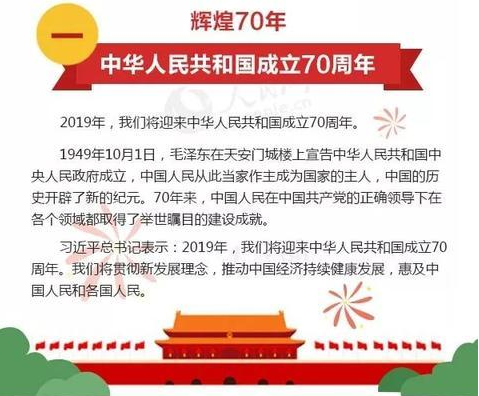 一 中華人民共和國2019年10月1號成立70周年輝煌70年