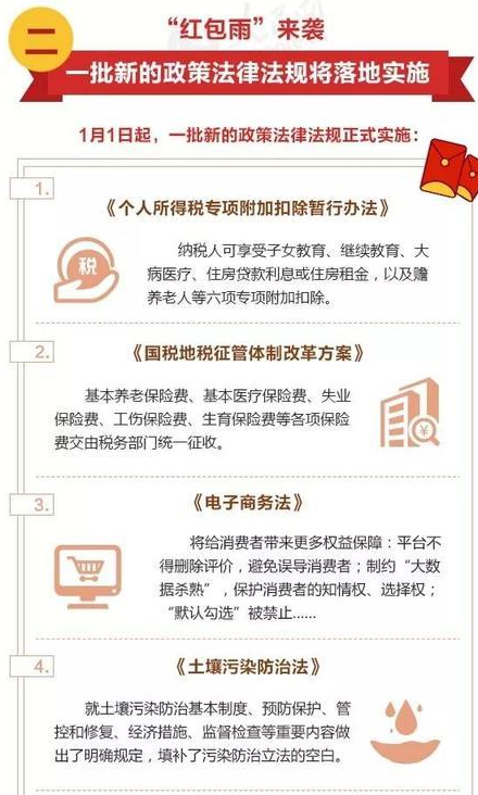 二 1月1日起一批新的政策法律法規正式施行:‘紅包雨’的惠民政策來襲!