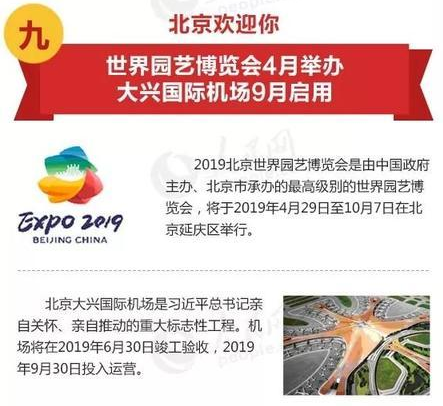 九 北京歡迎你,世界園藝博覽會4月到10月舉行,大興國際機場9月正式對外開放