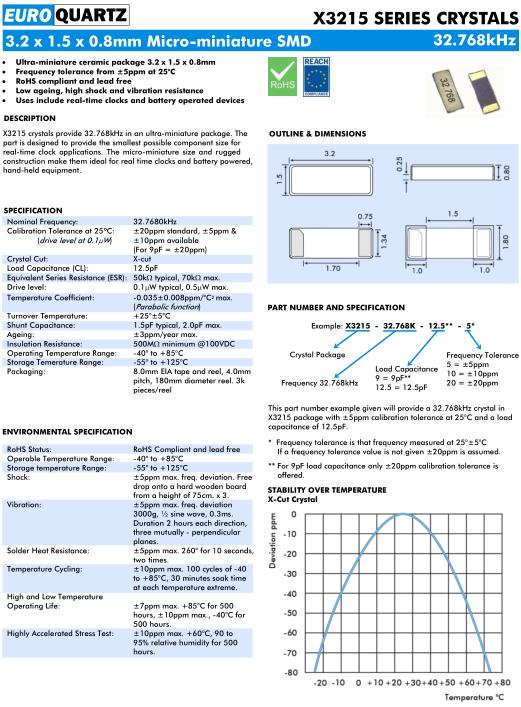 Euroquartz晶振,X3215晶振,X3215-32.768K-12.5-5晶振,Euroquartz Limited是一家獨立的,以英國為基地的全球電子制造行業石英晶體,振蕩器,濾波器和頻率相關產品的制造商和供應商。