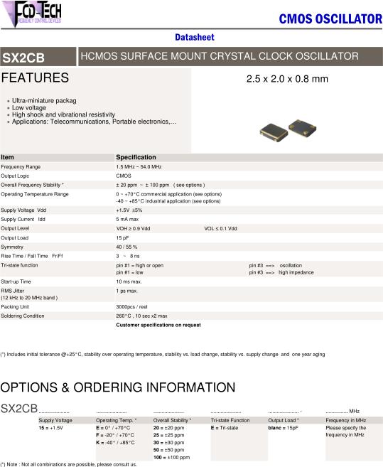 FCD-Tech晶振,SX2CB晶振,SX2CB-15K25E15pF-16.000MHz晶振,有源晶振,是指晶體本身起振需要外部電壓供應,起振后可直接驅動CMOS集成電路,產品本身已實現與薄型IC(TSSOP封裝,TVSOP封裝)同樣的1mm厚度,斷開時的消費電流是15µA以下,編帶包裝方式可對應自動搭載及IR回流焊接(無鉛對應)產品有幾種電壓供選1.8V,2.5V,3V3.3V,5V,以應對不同IC產品需要.