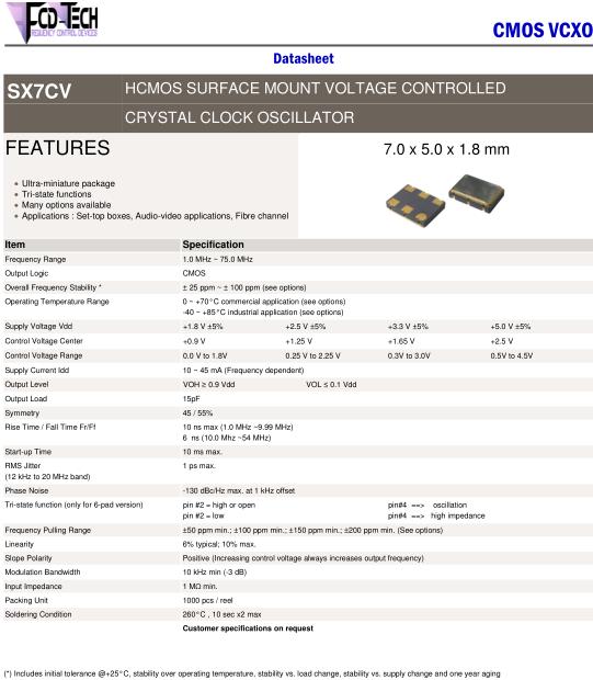 荷蘭FCD-Tech晶體-FCD-Tech Quartzcrystal是業內知名頻率元件制造商,總部位于荷蘭,擁有先進的生產技術,豐富的專業知識,致力于為用戶提供高可靠性FCD-Tech晶振,有源晶振,TCXO晶振等產品.FCD-Tech晶振,SX7CV晶振,SX7CV-33F25F6P50-24.000MHz晶振.
