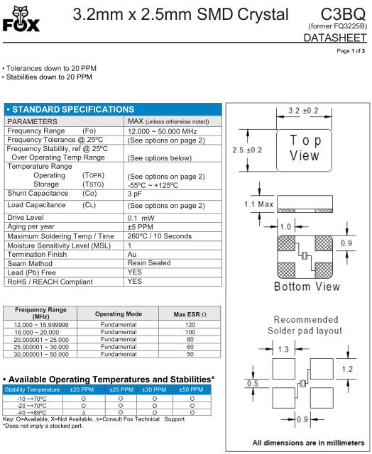 | FOX晶振規格 | 單位 | C3BQ晶振頻率范圍 | 石英晶振基本條件 |
