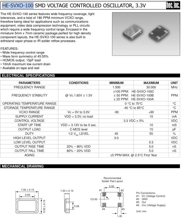 HEC晶振,HE-SVXO-100晶振,VCXO壓控晶振
