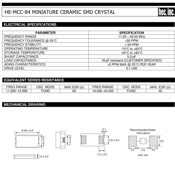 HECCrystal是美國知名晶振品牌,生產制造各種HEC晶振,HEC貼片晶體,包括晶體振蕩器系列.HECCrystal除了晶振之外也是射頻和微波產品的重要制造商.
