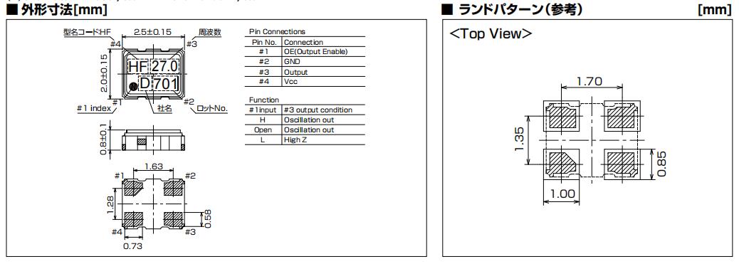 | KDS晶振 | 1XSF027000EH6 | DSO221SHF | 2520 | 27.000MHZ | 3.3V | 30PPM |