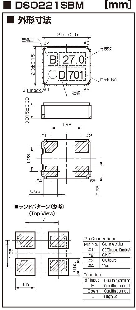 | 消費電流 | +8mA max.(3.25≦fo≦52MHz) |