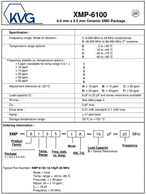 KVG晶振,XMP-6100晶振,XMP-6135-1A-16pF-20MHZ晶振