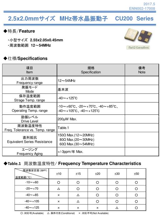 - 產(chǎn)品描述:NAKA晶振,CU200晶振,水晶振動子,小體積貼片2520mm晶振,外觀小型,表面貼片型晶體振蕩器,因本身體積小等優(yōu)勢,適用于移動通信終端的基準(zhǔn)時鐘等移動通信領(lǐng)域.小型,薄型,輕型,具備優(yōu)良的耐環(huán)境特性及高耐熱性強(qiáng).滿足無鉛焊...