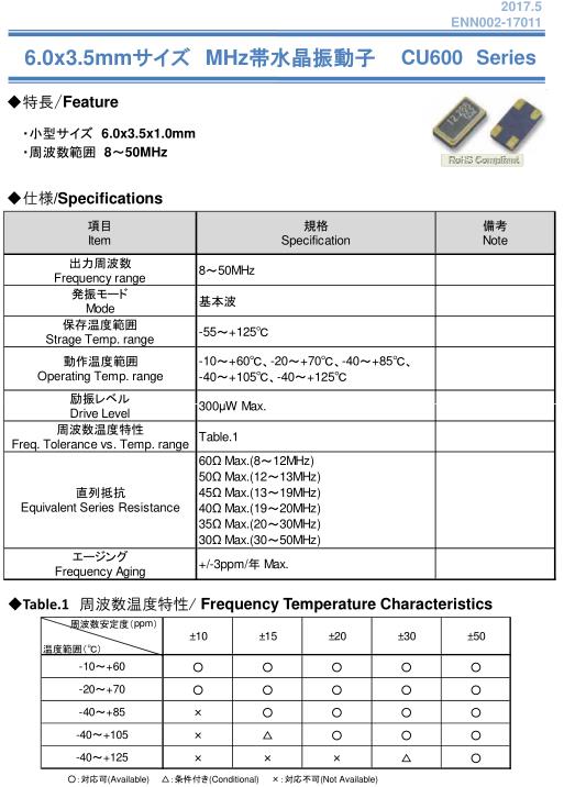 在一個不同擴張系數電路板(環氧玻璃)上焊接陶瓷封裝石英晶振時,在溫度長時間重復變化時可能導致端子焊接部分發生斷裂,請事先檢查焊接特性。納卡晶振,CU600晶振,6035mm貼片晶振.