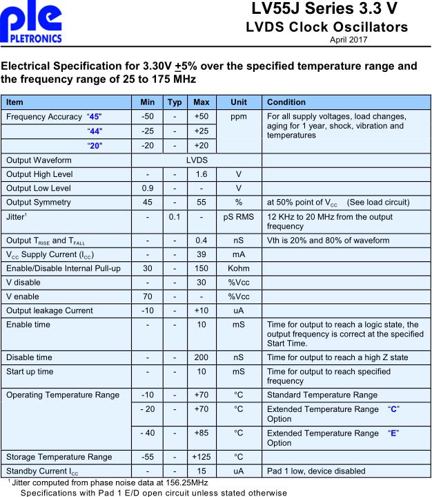 Pletronics晶振,LV55J晶振,有源晶振,