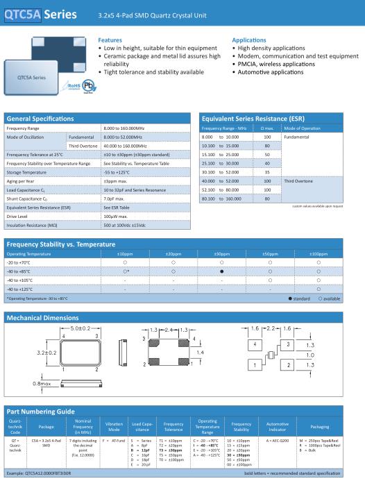 Quarztechnik晶振,QTC5A晶振,QTC5A12.0000FBT3I30R晶振