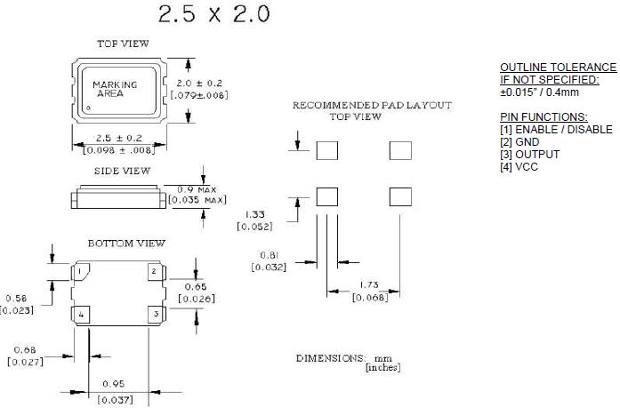 Pin 1: High or Open >> Output enabled Pin 3 Pin 1: Low >> Output disabled (High impedance) |