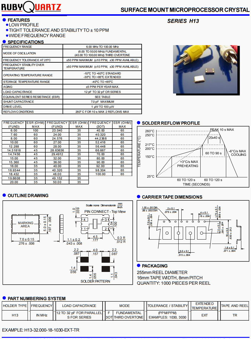 | 老化 | ±5 PPM PER YEAR MAX. |