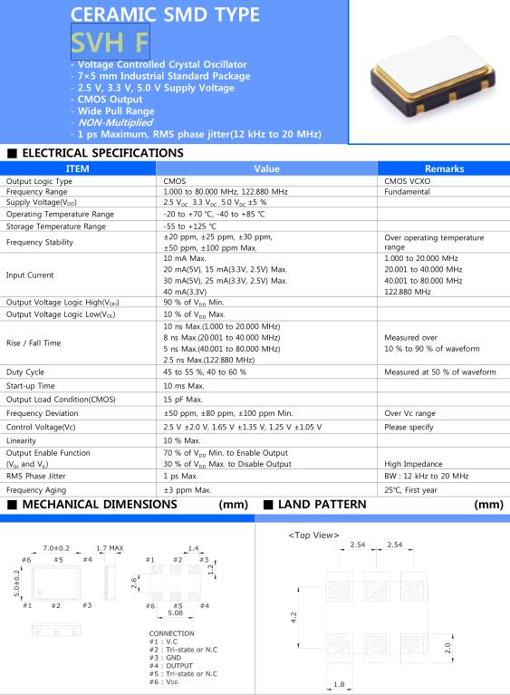 | Frequency Deviation | ±50ppm, ±80ppm, ±100ppm Min. | Over Vc range |