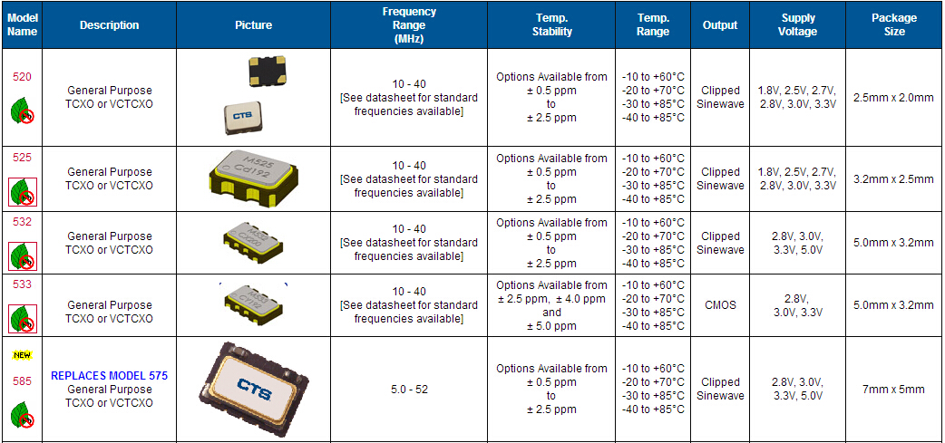 TCXO晶體,585-7050M溫補振蕩器,CTS石英晶振