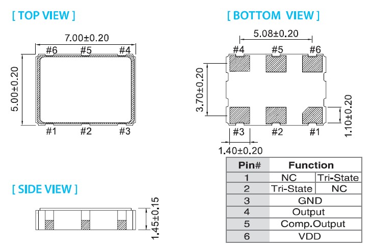 貼片封裝工業標準尺寸:7 x 5mm的(OT-M),5×3.2mm的(OW-M)的