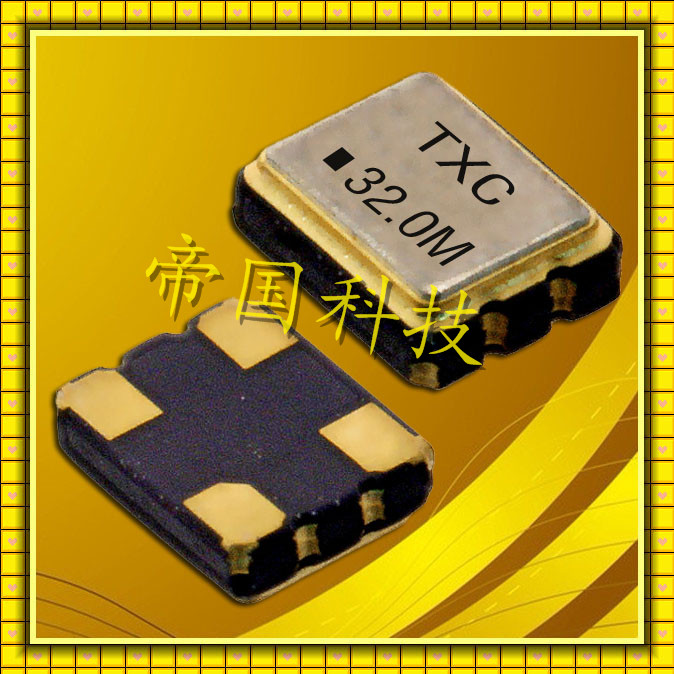 SMD晶振,7X-3225mm振蕩器,TXC有源石英晶體,有源晶振,是只晶體本身起振需要外部電壓供應,起振后可直接驅動CMOS 集成電路,產品本身已實現與薄型IC(TSSOP封裝,TVSOP封裝)同樣的1mm厚度,斷開時的消費電流是15 µA以下,編帶包裝方式可對應自動搭載及IR回流焊接(無鉛對應)產品有幾種電壓供選1.8V,2.5V,3V3.3V,5V,以應對不同IC產品需要.
