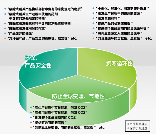 京瓷將“防止全球變暖、節(jié)能性”、“資源循環(huán)性”、“環(huán)保、產(chǎn)品安全性”這3個(gè)主題視為最重要的課題,在產(chǎn)品開(kāi)發(fā)階段就明確地設(shè)定了相應(yīng)的環(huán)保理念.