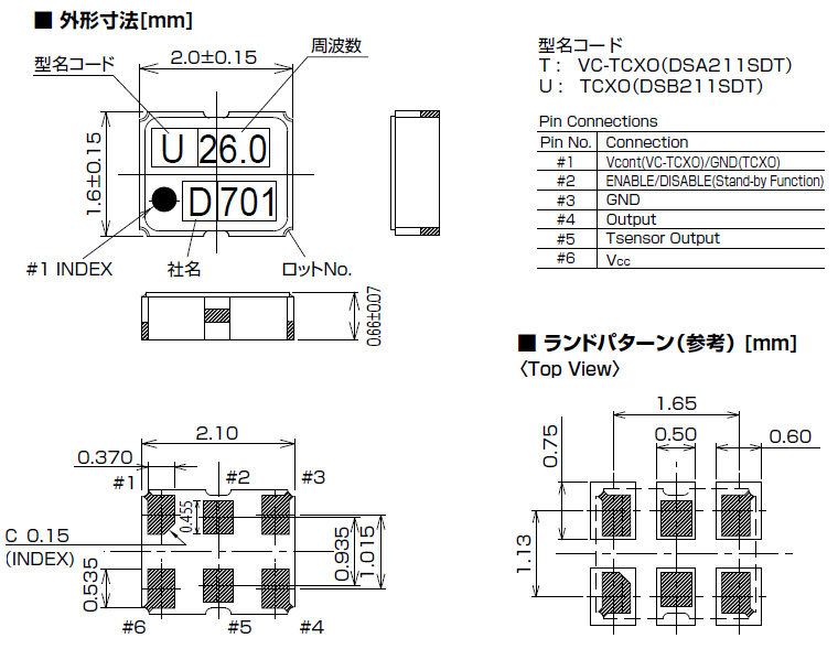 日本大真空株式會(huì)社,DSB211SDT溫補(bǔ)晶振,六腳貼片晶振,溫補(bǔ)晶振(TCXO)產(chǎn)品本身具有溫度補(bǔ)償作用,高低溫度穩(wěn)定性:頻率精度高0.5 PPM~2.0 PPM,工作溫度范圍: - 30度~85度,電源電壓:1.68V~3.5V之間可供選擇,產(chǎn)品本身具有溫度電壓控制功能,世界上最薄的晶振封裝,頻率:26兆赫,33.6兆赫,38.4兆赫,40兆赫,因產(chǎn)品性能穩(wěn)定,精度高等優(yōu)勢(shì),被廣泛應(yīng)用到一些比較高端的數(shù)碼通訊產(chǎn)品領(lǐng)域,GPS全球定位系統(tǒng),智能手機(jī),WiMAX和蜂窩和無(wú)線通信等產(chǎn)品,符合RoHS/無(wú)鉛.