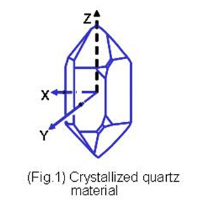 石英是由硅原子和氧原子組合而成的二氧化硅(Silicon Dioxide, SiO2), 以32點群的六方晶系形成的單結(jié)晶結(jié)構(gòu)﹝圖一﹞.單結(jié)晶的石英晶體結(jié)構(gòu)具有壓電效應(yīng)特性, 當(dāng)施加壓力在晶體某些方向時, 垂直施力的方向就會產(chǎn)生電氣電位. 相對的當(dāng)以一個電場施加在石英晶體某些軸向時, 在另一些方向就會產(chǎn)生變形或振動現(xiàn)象. 掌握單結(jié)晶石英材料的這種壓電效應(yīng), 利用其發(fā)生共振頻率的特性, 發(fā)揮其精確程度作為各類型頻率信號的參考基準(zhǔn), 就是水晶震蕩器的設(shè)計與應(yīng)用. 因為石英晶體具有很高的材料Q值,所以絕大部份的頻率控制組件,如共振子及振蕩器,都以石英材料為基礎(chǔ). 以石英為基礎(chǔ)的頻率控制組件可以依其壓電振動的屬性, 可以分為體波(bulk wave)振動組件及表面聲波(surface acoustic wave)振動組件. 體波振動組件如石英晶體共振子, 石英晶體濾波器及石英晶體振蕩器, 表面波振動組件如表面波濾波器及表面波共振子. 當(dāng)石英晶體以特定的切割方式, 以機械加工方式予以表面研磨, 完成特定的外型尺寸就是通稱的石英芯片(quartz wafer 或 quartz blank ). 將這個石英芯片放置在真空還境中, 于表面鍍上電極后,再以導(dǎo)電材料固定在金屬或是陶瓷基座上, 并加以封裝, 就成為一般所謂的石英晶體共振子( quartz crystal resonator ). 利用石英共振子在共振時的低阻抗特性及波的重迭特性, 用鄰近的雙電極, 可以做出石英晶體濾波器. 將石英振蕩子加上不同的電子振蕩線路, 可以做成不同特性的石英振蕩器. 例如: 石英頻率振蕩器(CXO), 電壓控制石英晶體振蕩器(Voltage Controlled Crystal Oscillator, VCXO), 溫度補償石英晶體振蕩器(Temperature Compensated Crystal Oscillator, TCXO), 恒溫槽控制石英晶體振蕩器(Oven Controlled Crystal Oscillator, OCXO)…等. 相對于體波諧振的是表面聲波的諧振. 將石英晶體表面鍍以叉狀電極(inter-digital-transducer, IDT)方式所產(chǎn)生的表面振蕩波, 可以制造出短波長(高頻率)諧振的表面聲波共振子(SAW Resonator)或表面聲波濾波器(SAW Filter).