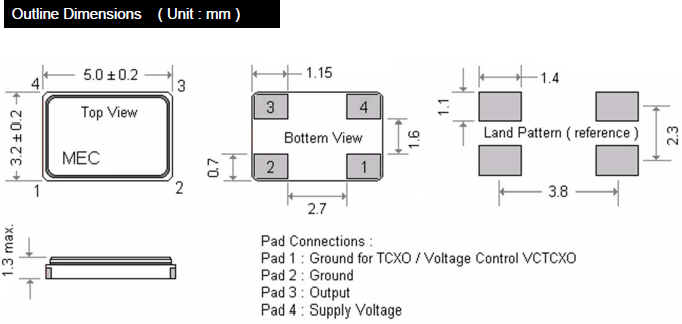 - 尺寸:5.0 x 3.2 x 1.3 mm